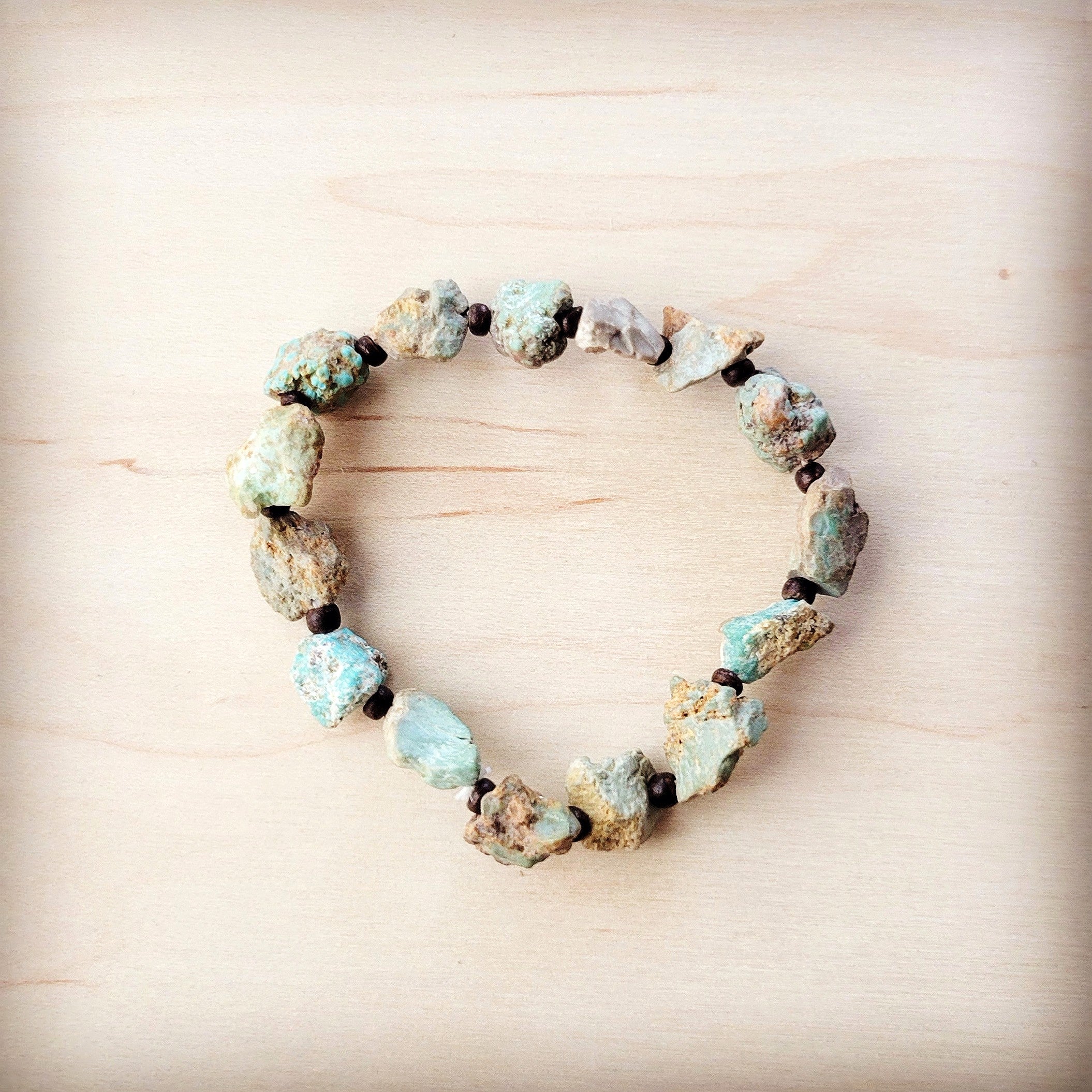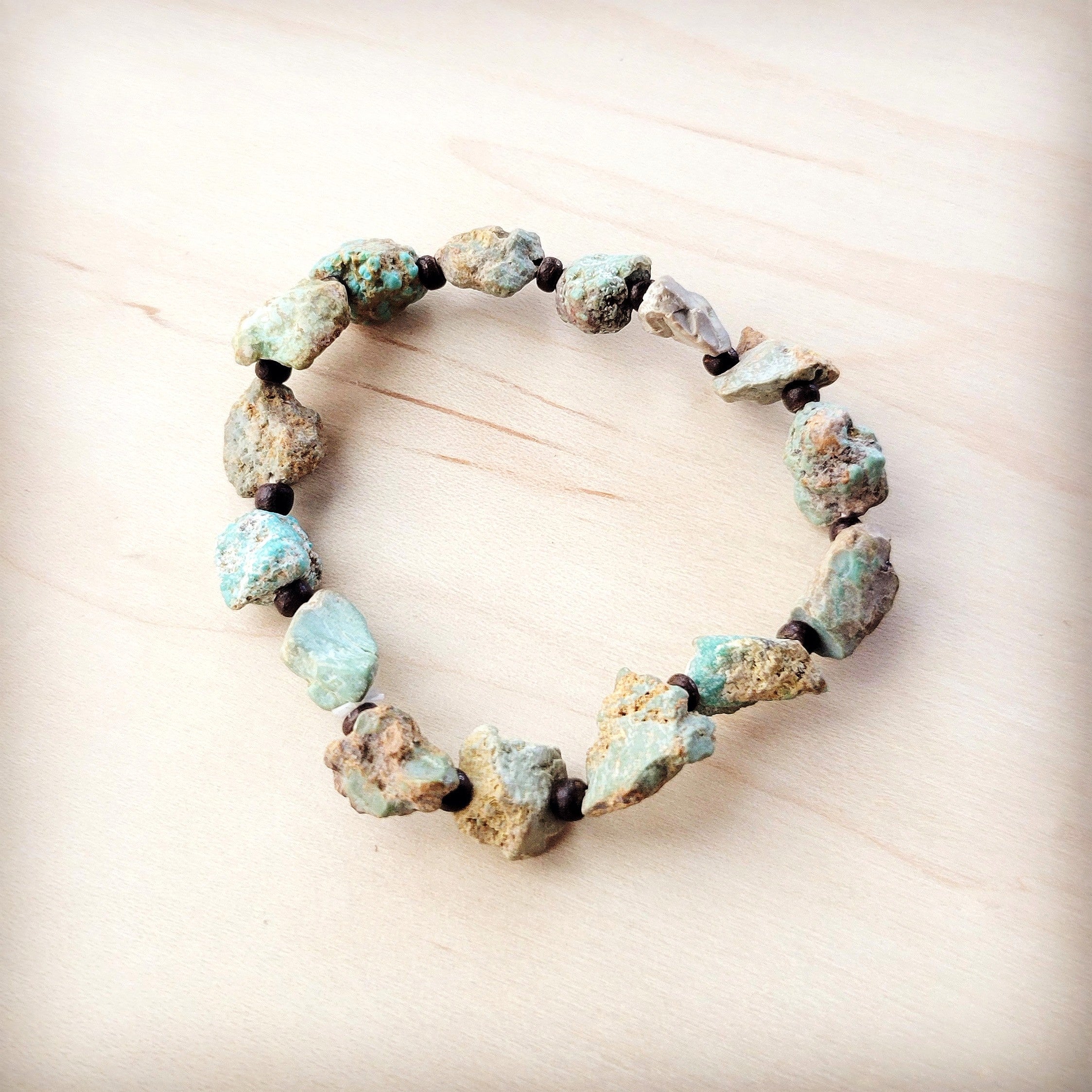 Genuine HuBei Natural Rough Turquoise Beaded Bracelet 811b