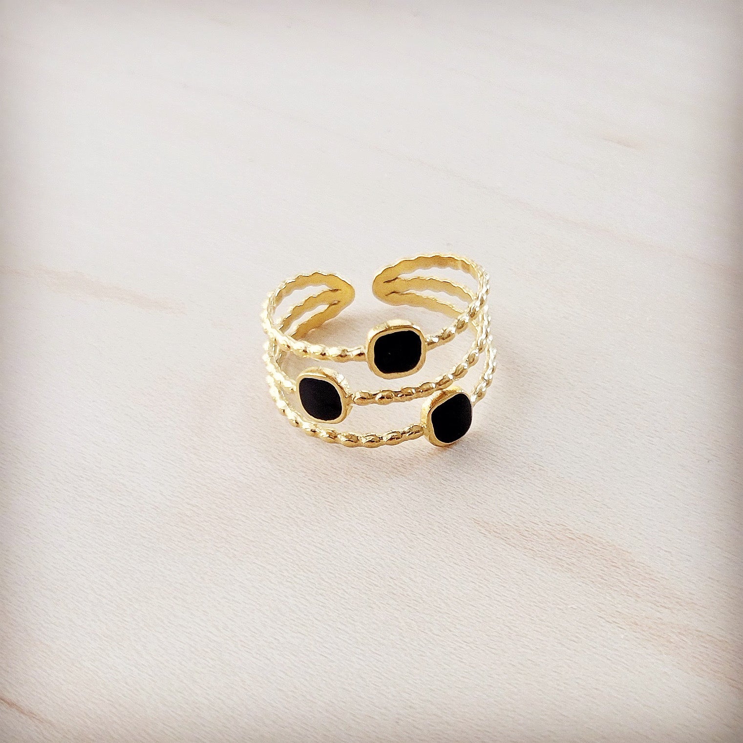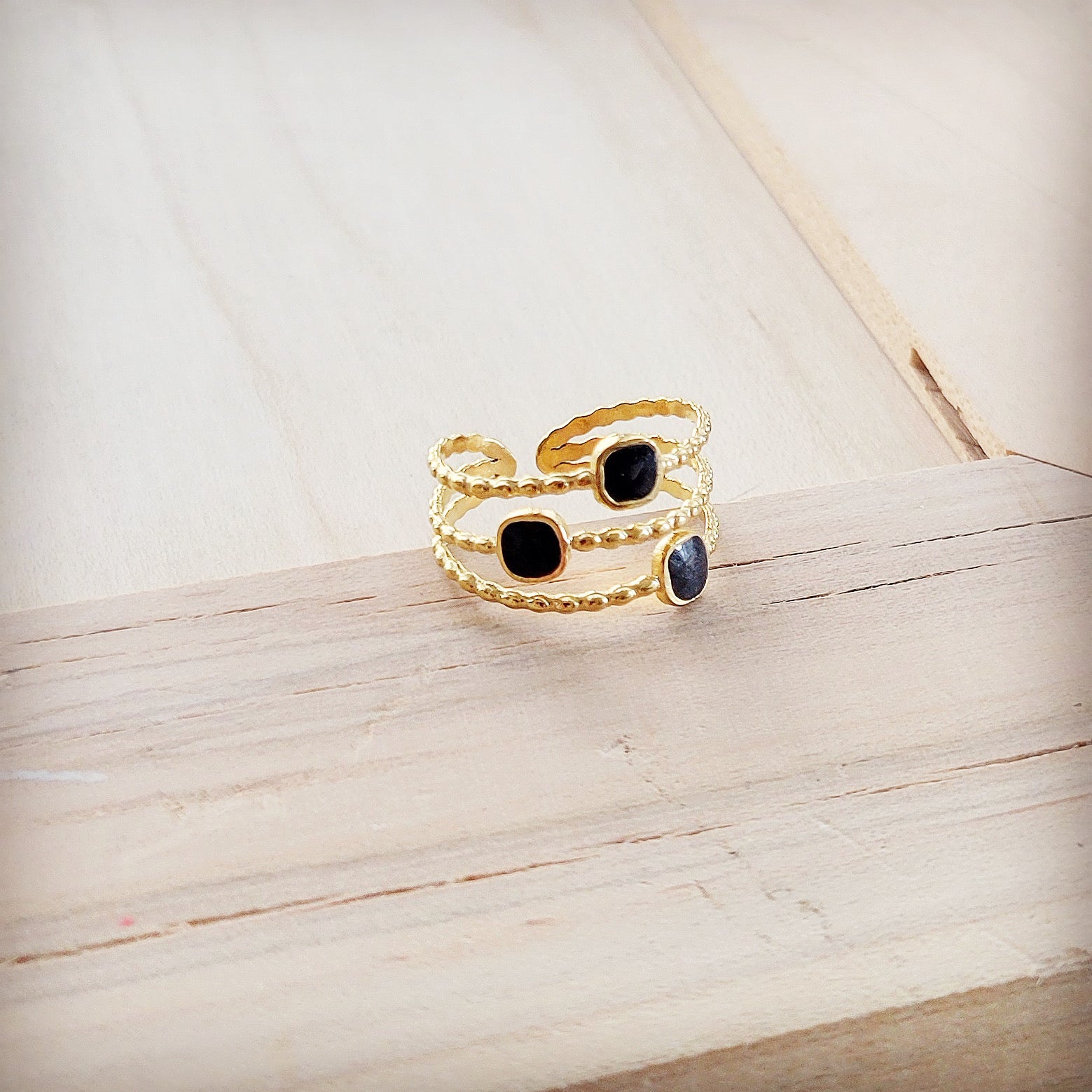 Gold Electroplate Cuff Ring with Black Enamel Accents 012gg