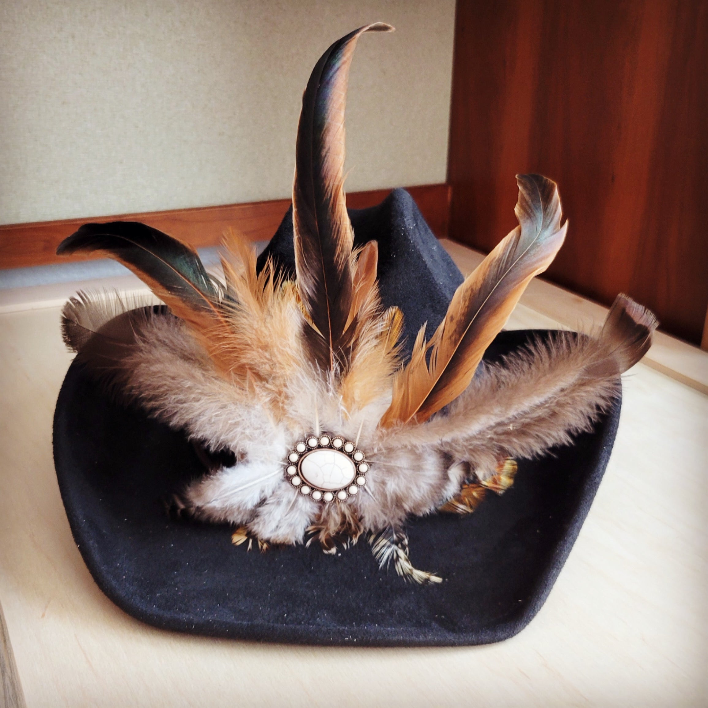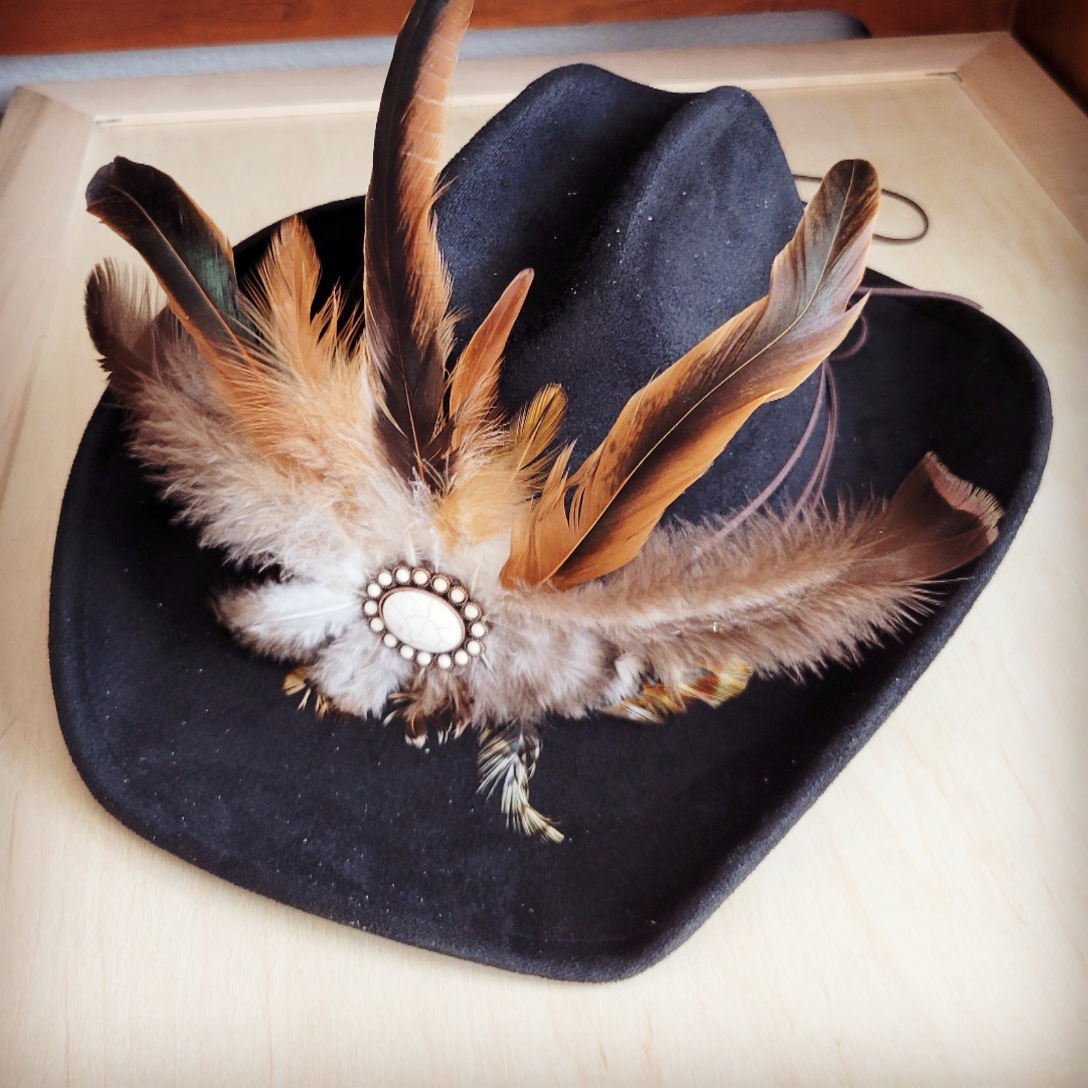 • The same primary feathers will be used on every hat accent.  Keep in mind, these will never be identical to the photo.  These are REAL feathers and no two could be alike without using fake ones--this is what sets your hat accent apart from others and will make it uniquely yours!