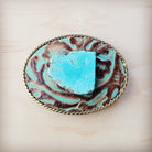 Discover the perfect blend of boho and western style with this Rope Edge Leather Belt Buckle, showcasing a captivating turquoise slab. Handmade with meticulous craftsmanship, its unique design highlights rugged leather and artistic details, making it an eye-catching accessory to elevate your wardrobe. This buckle adds character and charm to any outfit while reflecting your appreciation for quality and individuality.