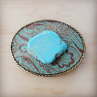 Discover the perfect blend of boho and western style with this Rope Edge Leather Belt Buckle, showcasing a captivating turquoise slab. Handmade with meticulous craftsmanship, its unique design highlights rugged leather and artistic details, making it an eye-catching accessory to elevate your wardrobe. This buckle adds character and charm to any outfit while reflecting your appreciation for quality and individuality.