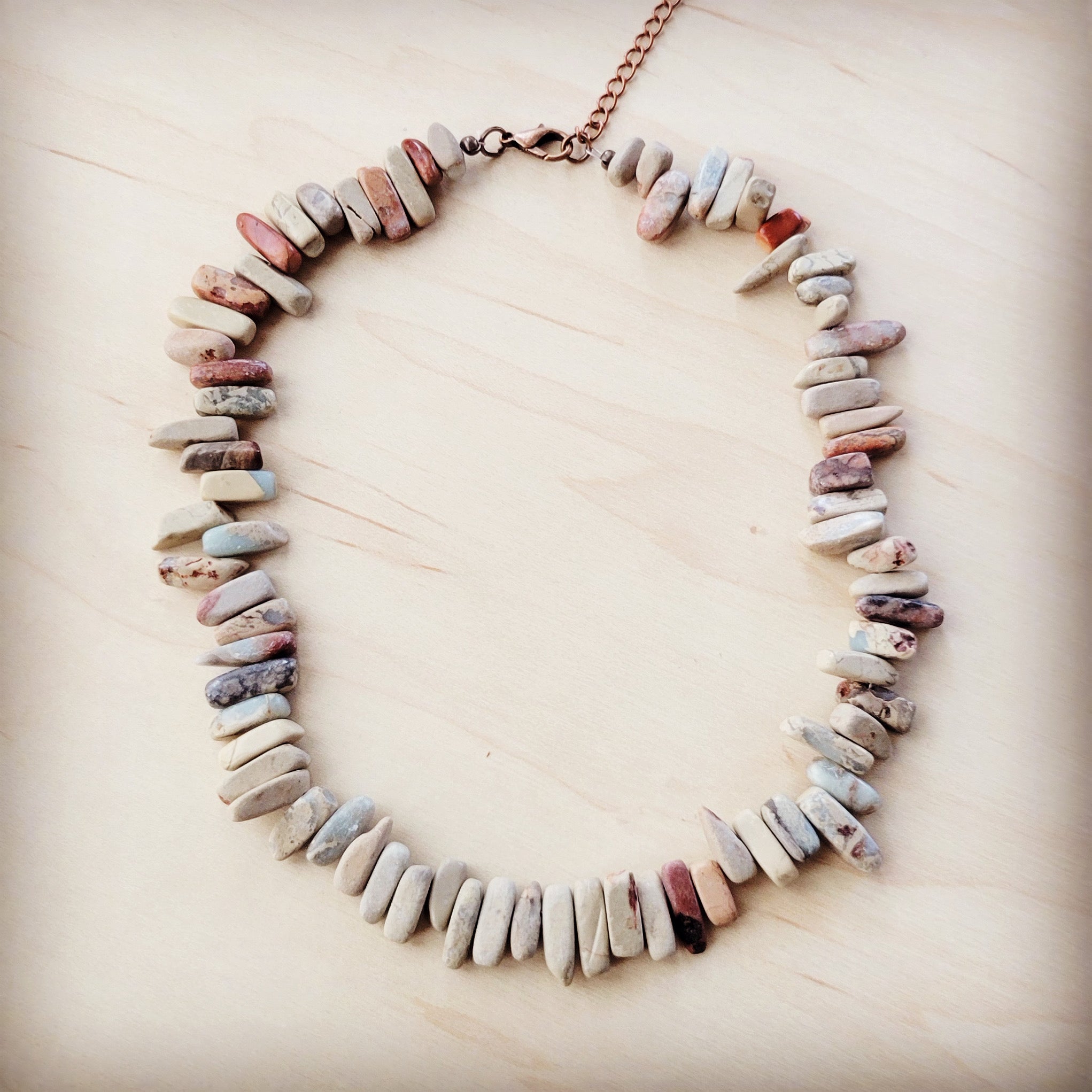 This handcrafted boho necklace features striking Genuine Aqua Terra Small slabs on a collar necklace. Perfect for adding a touch of unique style to any outfit. Handmade with care and attention to detail, this necklace is a must-have for any fashion-forward individual.