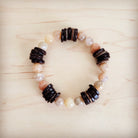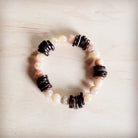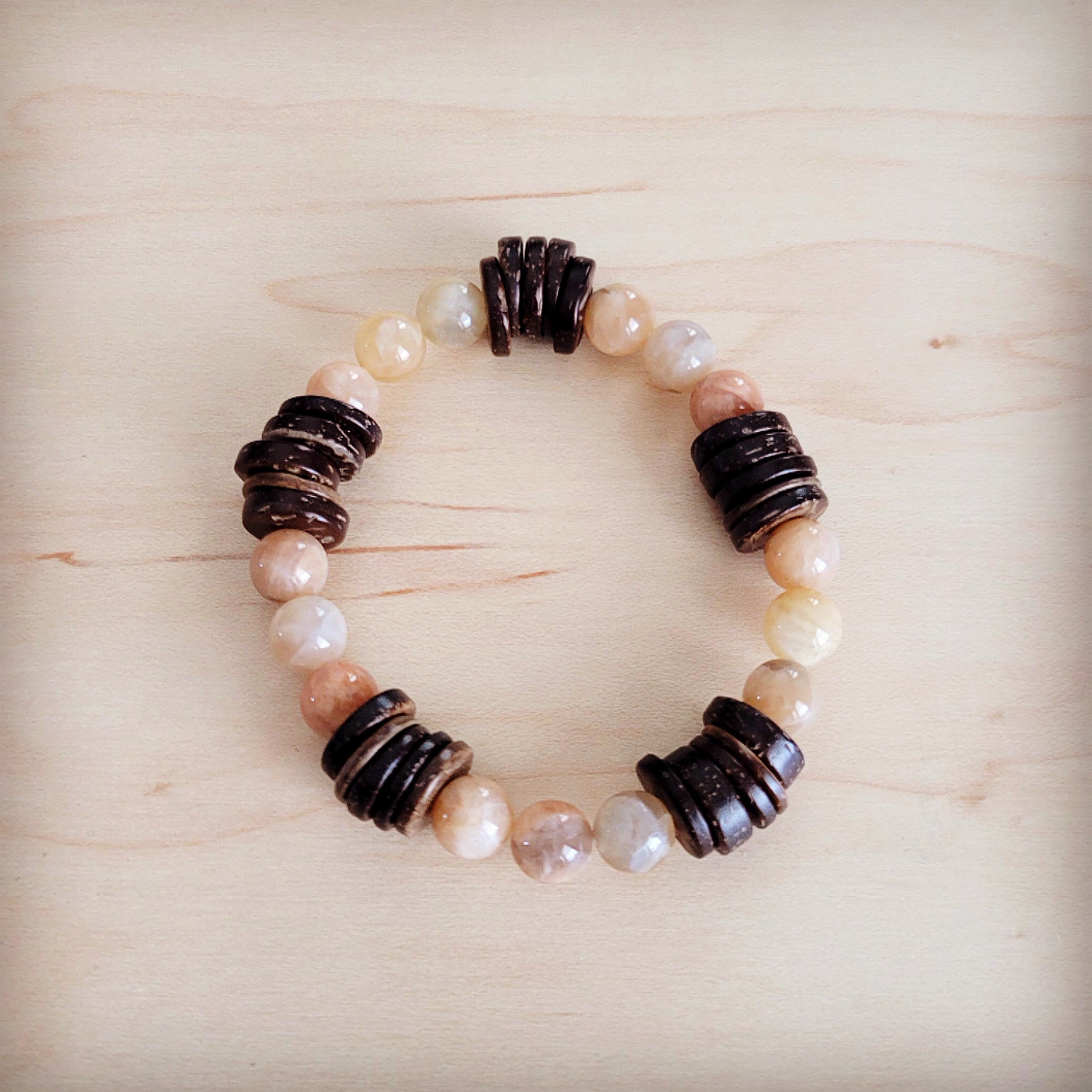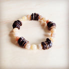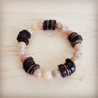 Natural Agate and Wood Beaded Stretch Bracelet 811n