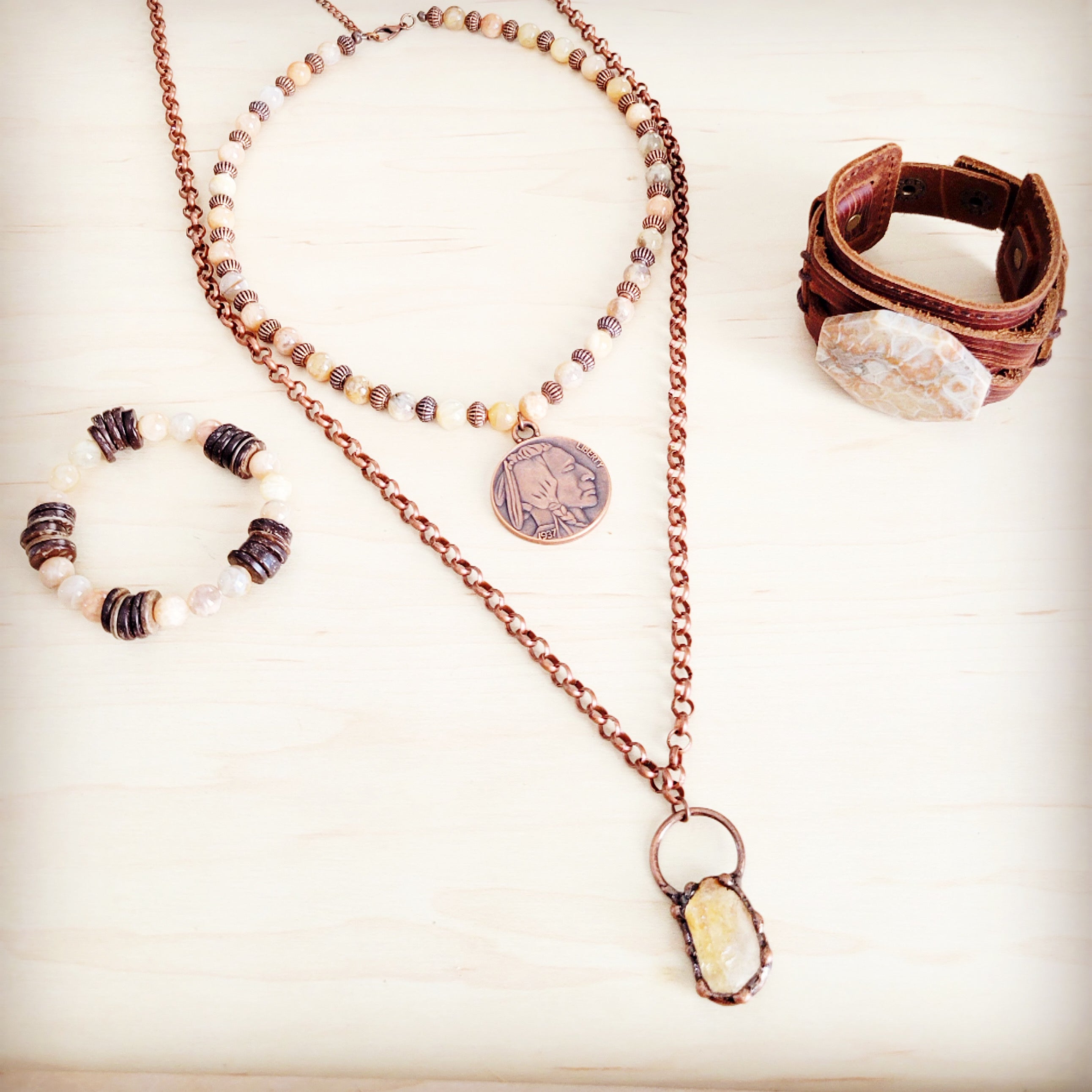 The Jewelry Junkie personally hand crafts all of our creations in the United States. Due to the uniqueness of natural materials, variations will occur in color and size.