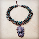 African Turquoise Beaded Collar Necklace w/ Indian Pendant 260u