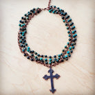 African Turquoise Beaded Collar Necklace w/ Cross Pendant 261c