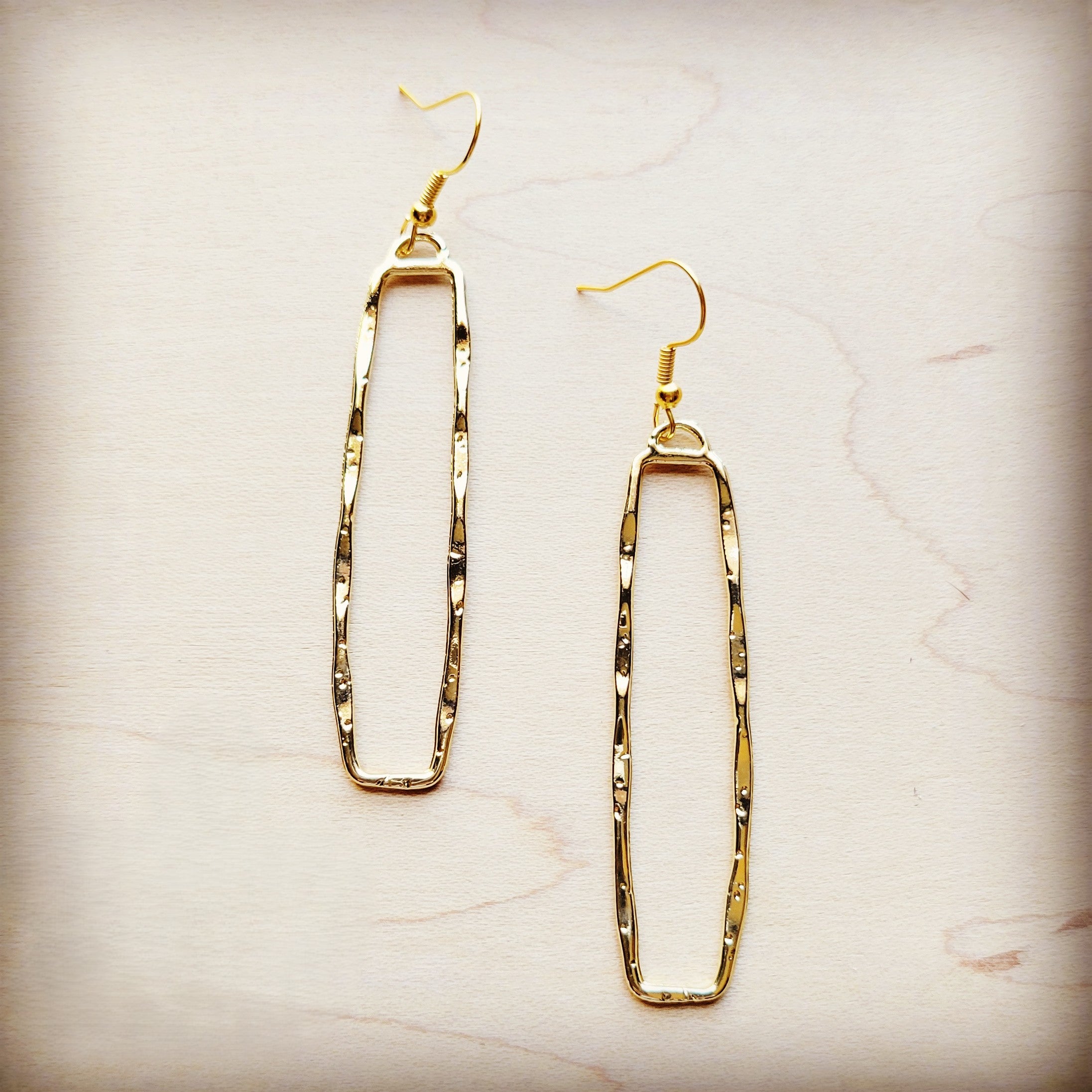 - These artisan earrings are made by hand with golden rectangles for a unique bohemian look.