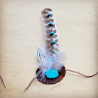 - *Please note, smaller feathers will be assorted and will match as closely to the photo as possible, but will not be identical. The primary piece of turquoise (color) and base leather piece will not change.