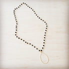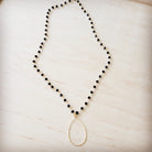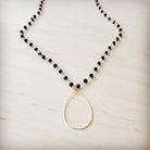 This elegant, necklace features a delicate chain of sparkling black faceted beads leading down to a graceful, hammered gold-tone teardrop pendant. It's a versatile piece, perfect for layering or wearing solo, offering a beautiful contrast and a touch of modern sophistication.