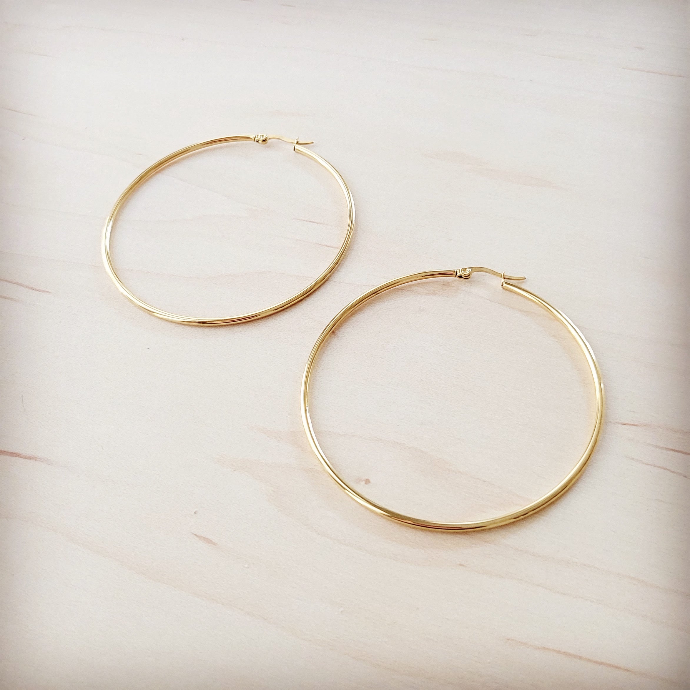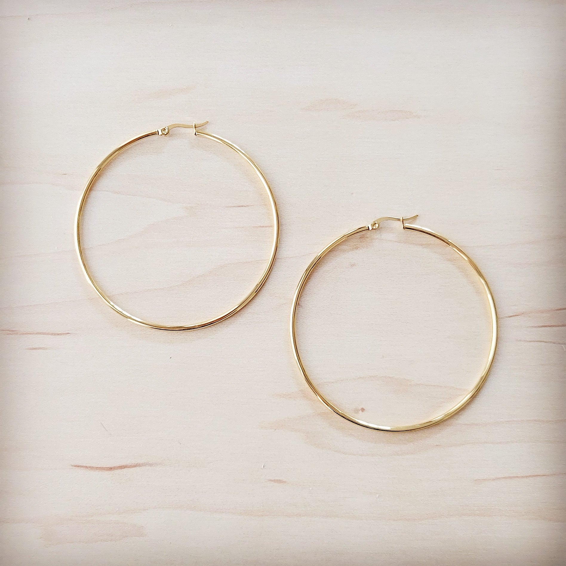 Extra Large Stainless Steel Hoop Earrings 18K Gold Plating 219cc