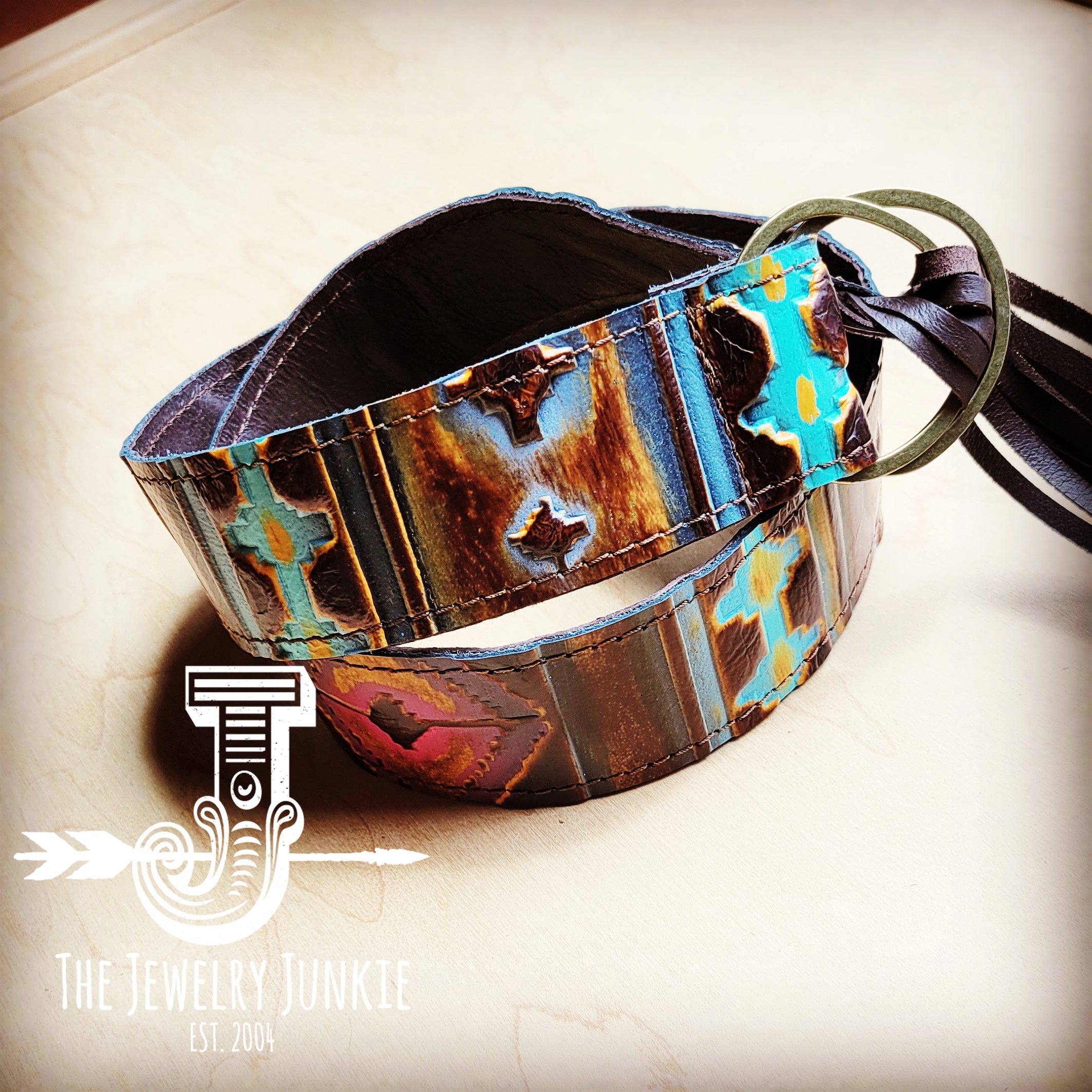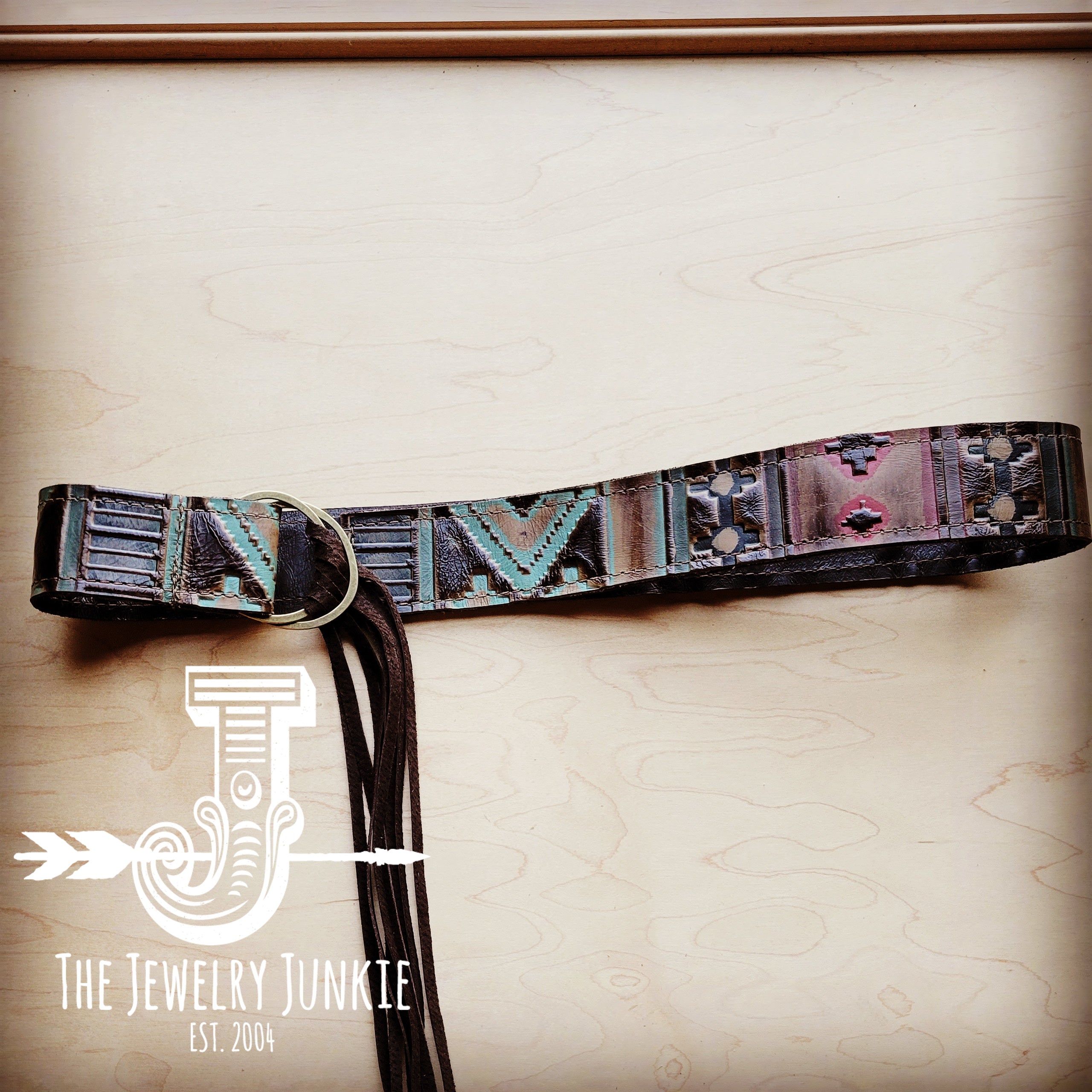 Magenta Navajo Leather Belt with Leather Fringe Closure 905o