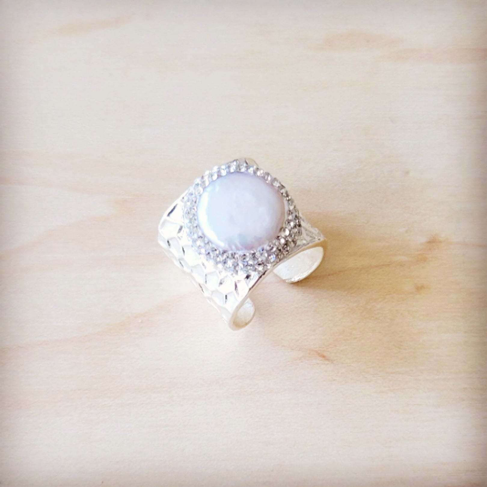 Hammered Silver & Mother-of-Pearl Ring 012ii