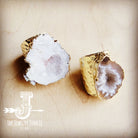 Natural Genuine Druzy chunky stone is encased in a golden setting.