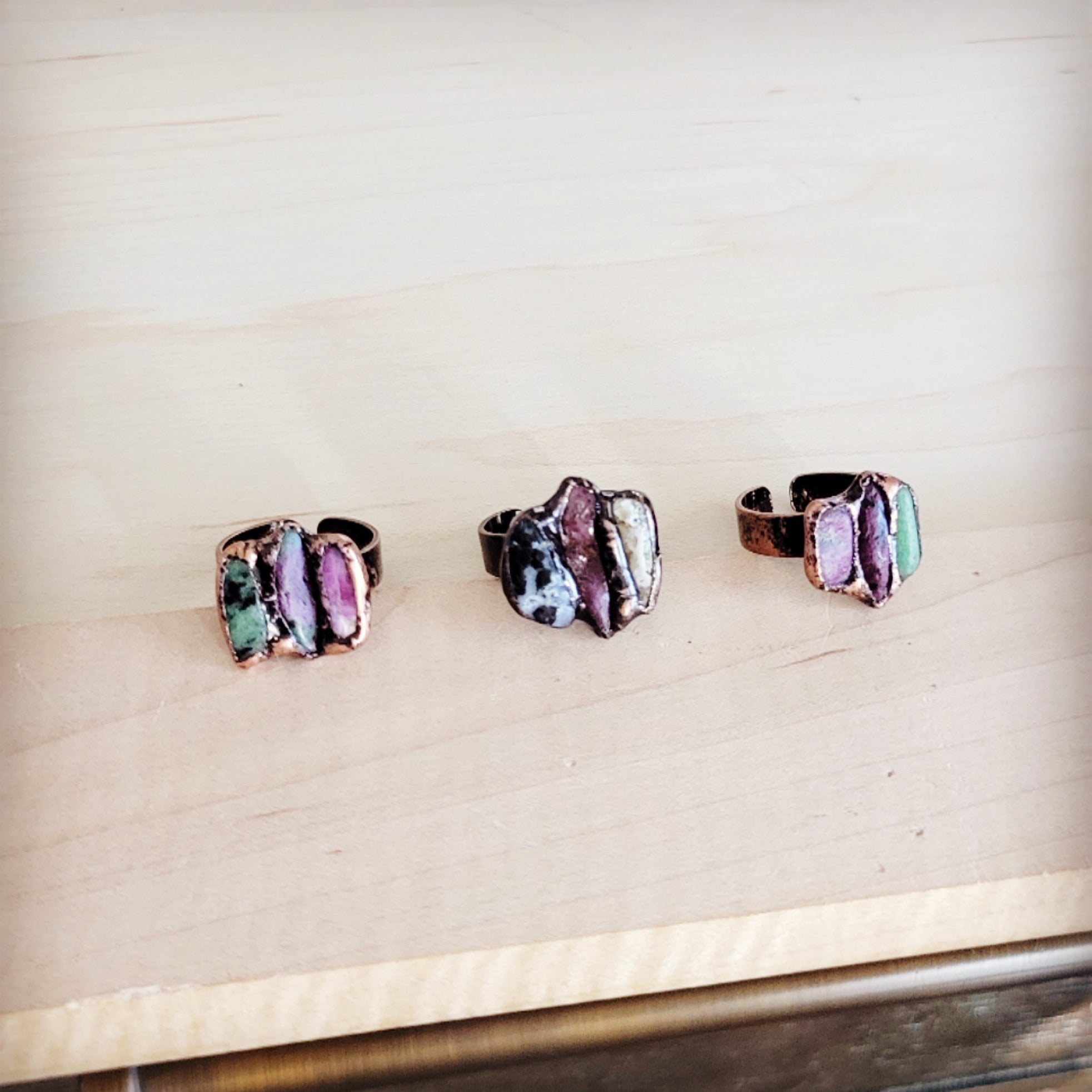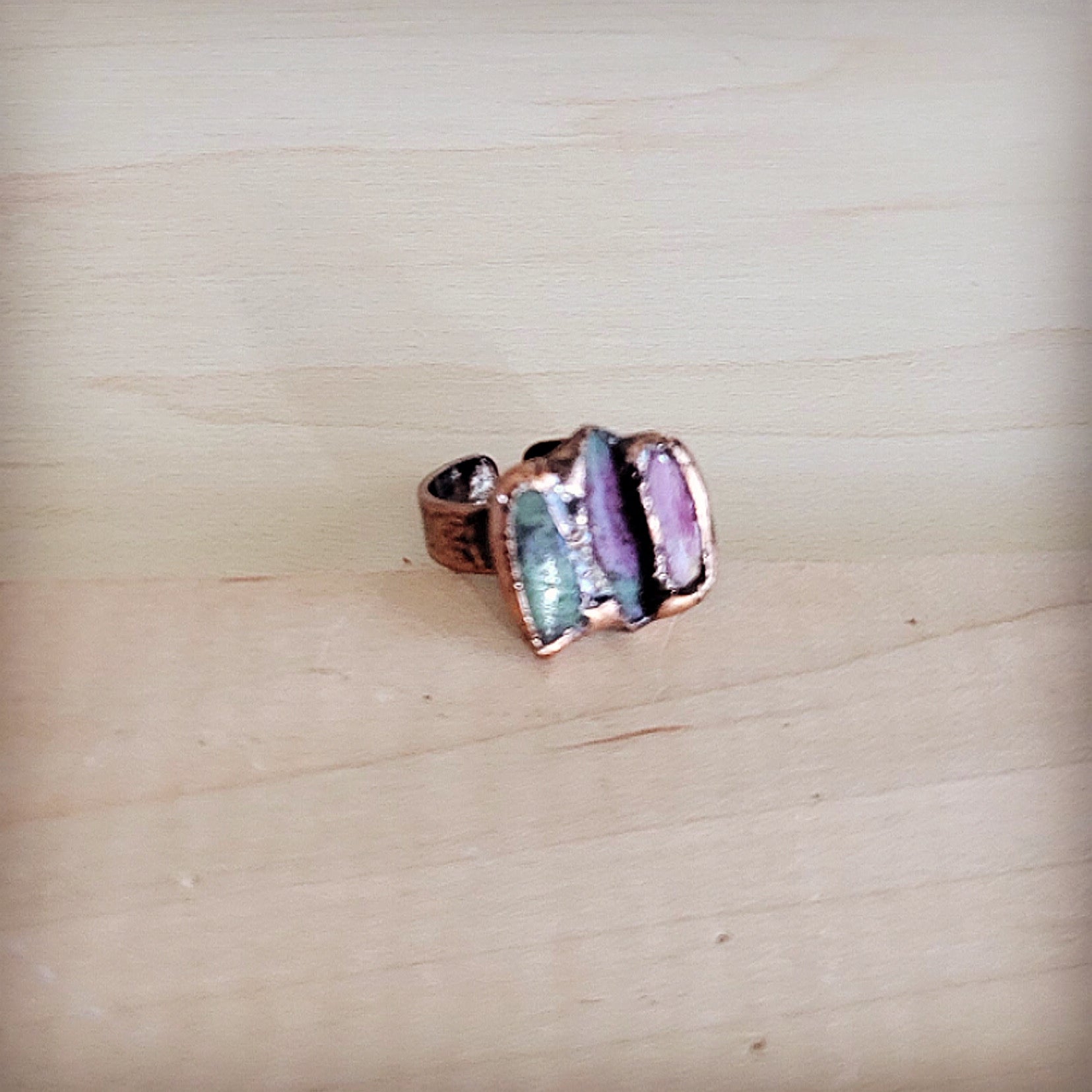 Raw Fusion Gemstone Copper Ring 013LL