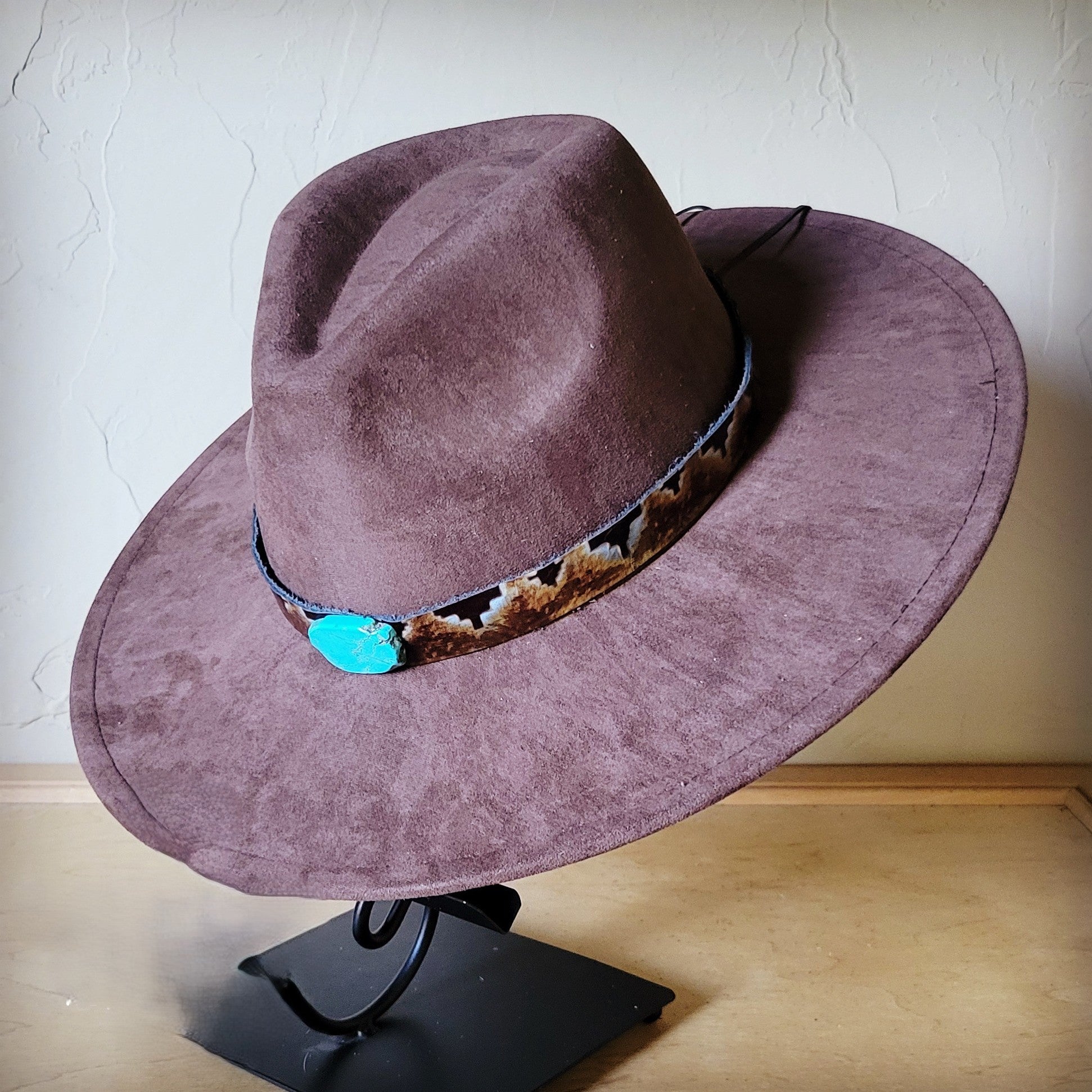 Blue Navajo Turquoise Slab Leather Band + Choice of Boho Hat 985p