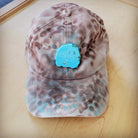 Hand-Painted Leopard Suede Baseball Cap w/ Turquoise-Ivory 986m