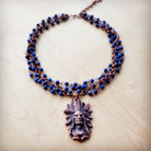Blue Lapis Beaded Collar Necklace w/ Indian Pendant 260r