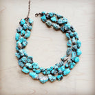 Indulge in this stunning turquoise necklace. Handmade in Texas, this necklace is a unique addition to any boho or western fashion ensemble. The genuine magnesite turquoise stones add a touch of natural beauty. Elevate your style with this one-of-a-kind piece!