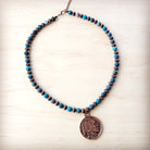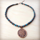 Natural American Turquoise Beaded Collar Necklace w/ Indian Head Pendant 262h