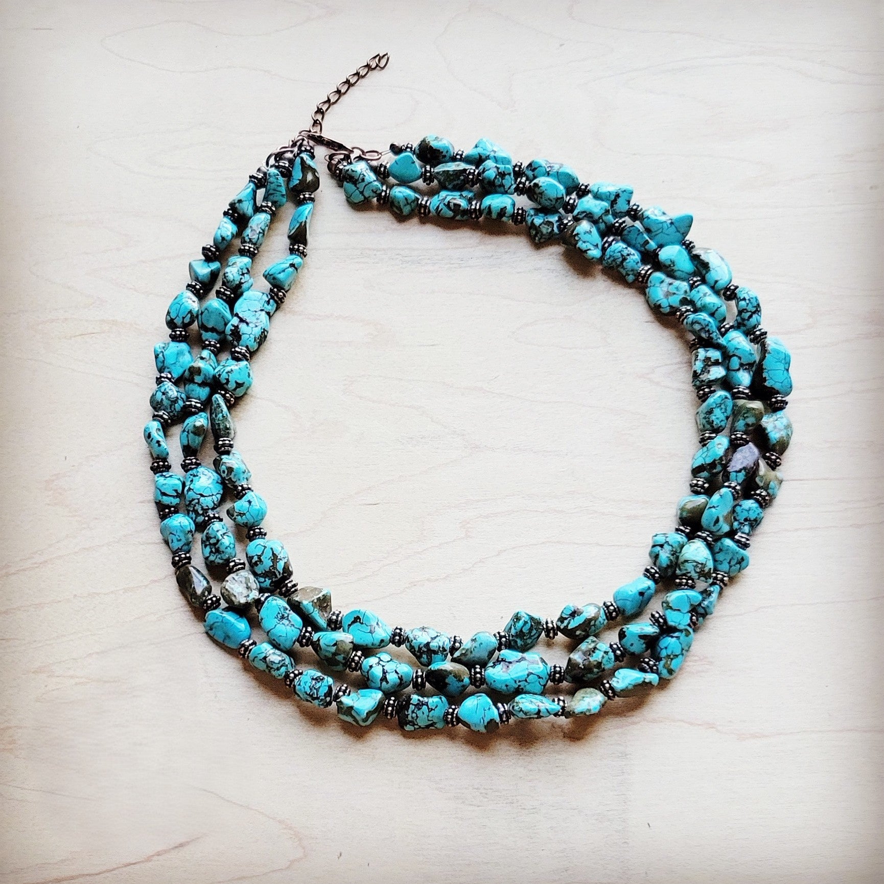 Triple Strand Blue Turquoise & Copper Collar Necklace 259e