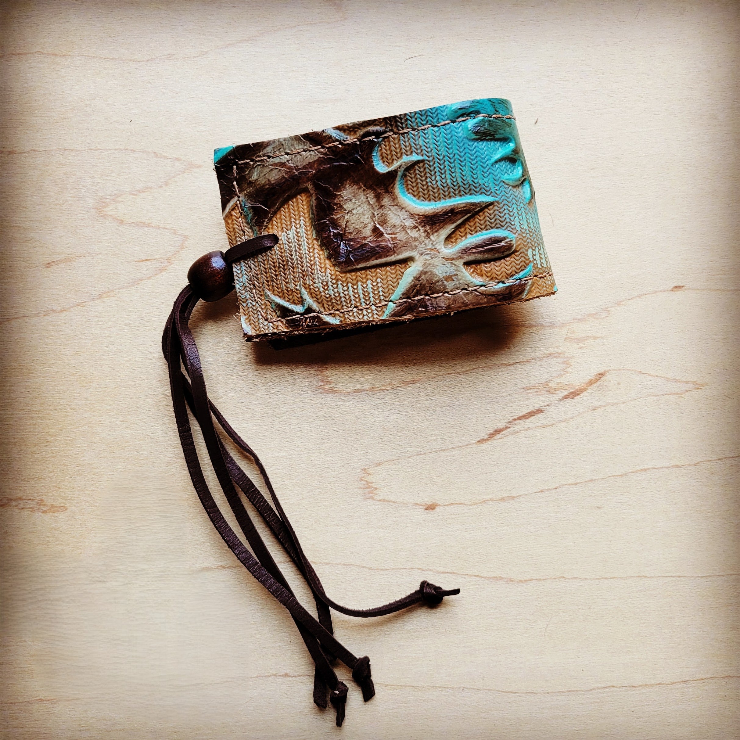 **Wide Leather Cuff w/ Adjustable Ties in Turquoise Sahara Laredo 004r