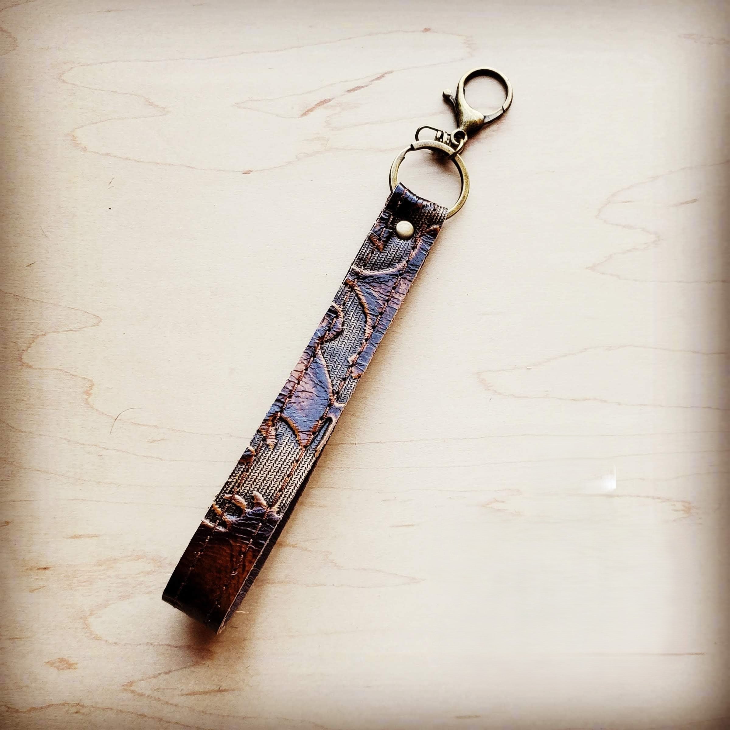 **Embossed Leather Key Chain Strap Brown Laredo 701n