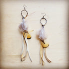 **Boho Bone Deer Skin Leather Tassel Earring-Yellow Feather 217e