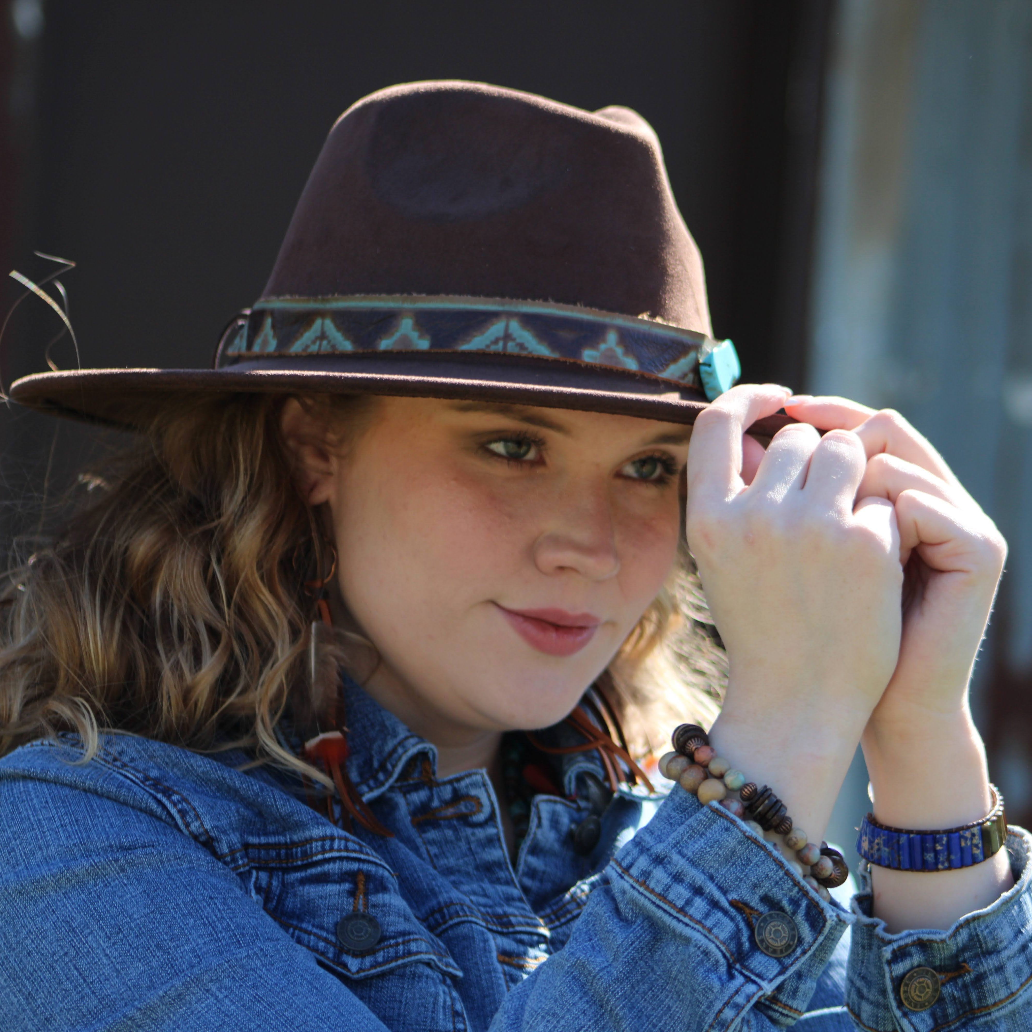• Vegan leather is looped through 1" copper hoops