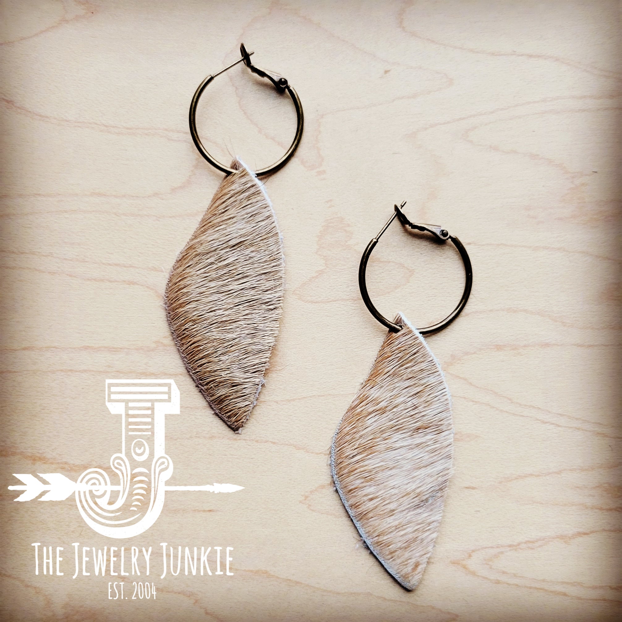 **Antique Gold Hoop Earrings w/ Dark Tan Hair-on-Hide 214e