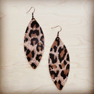 **Narrow Leather Oval Earrings-Suede Leopard 210f