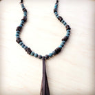 Natural American Turquoise Necklace w/ Wood Beads & Tassel 262i