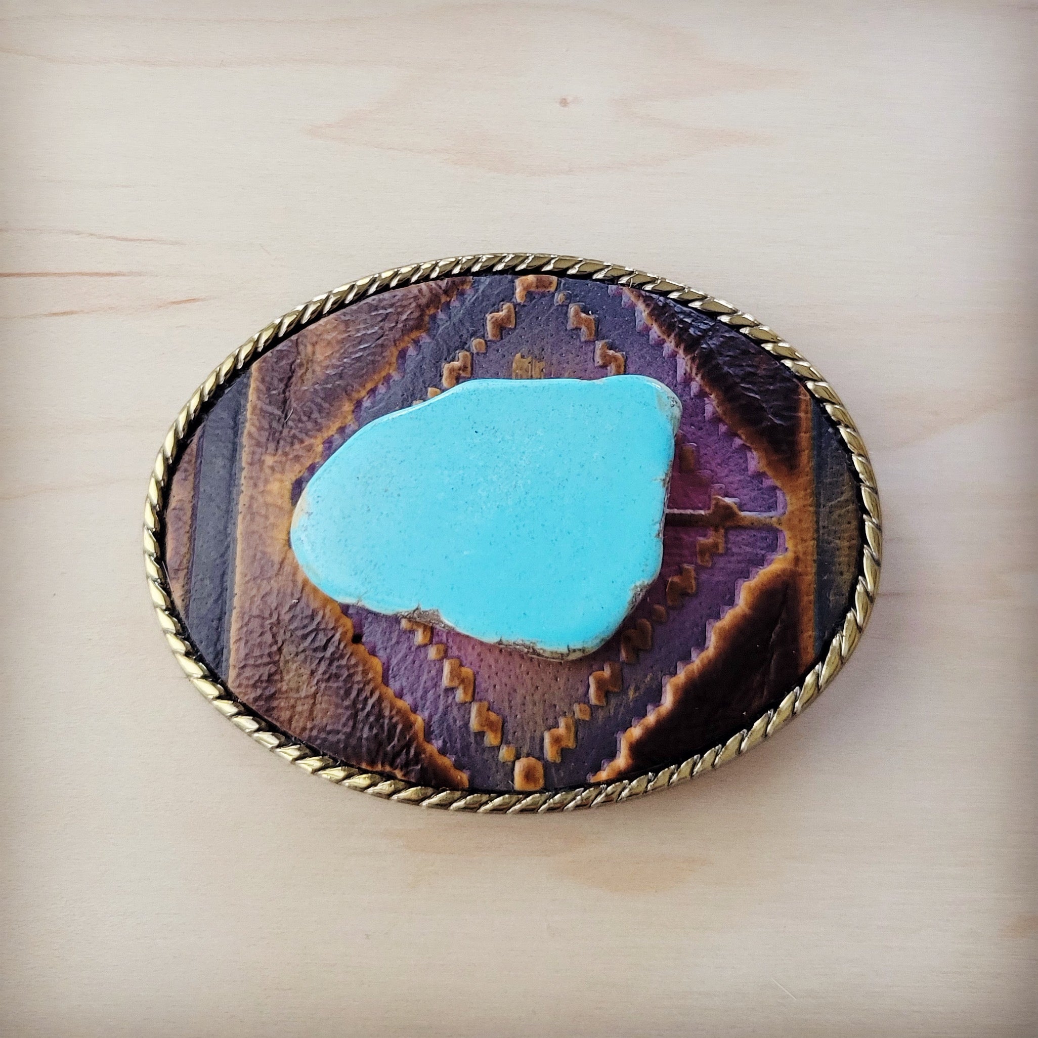 Discover the perfect blend of boho and western style with this Rope Edge Leather Belt Buckle, showcasing a captivating turquoise slab. Handmade with meticulous craftsmanship, its unique design highlights rugged leather and artistic details, making it an eye-catching accessory to elevate your wardrobe. This buckle adds character and charm to any outfit while reflecting your appreciation for quality and individuality.