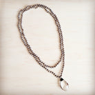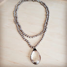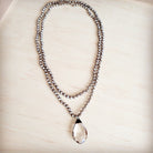 This elegant, Beaded Western Boho necklace features shimmering, smoky gray faceted beads leading to a bold, brilliant teardrop crystal pendant. The layered design and neutral tones capture an effortless chic boho spirit, making it the perfect statement piece to dress up any outfit. Once sold out it will not be made again, these items are final sale!