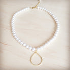 This chic and elegant boho style necklace features a luminous strand of simulated glass pearls, beautifully capped with gold-tone accents. The classic beads lead to a modern, open gold-tone teardrop pendant, creating a perfect balance of traditional elegance and free-spirited style. It's a versatile piece designed for the modern woman.