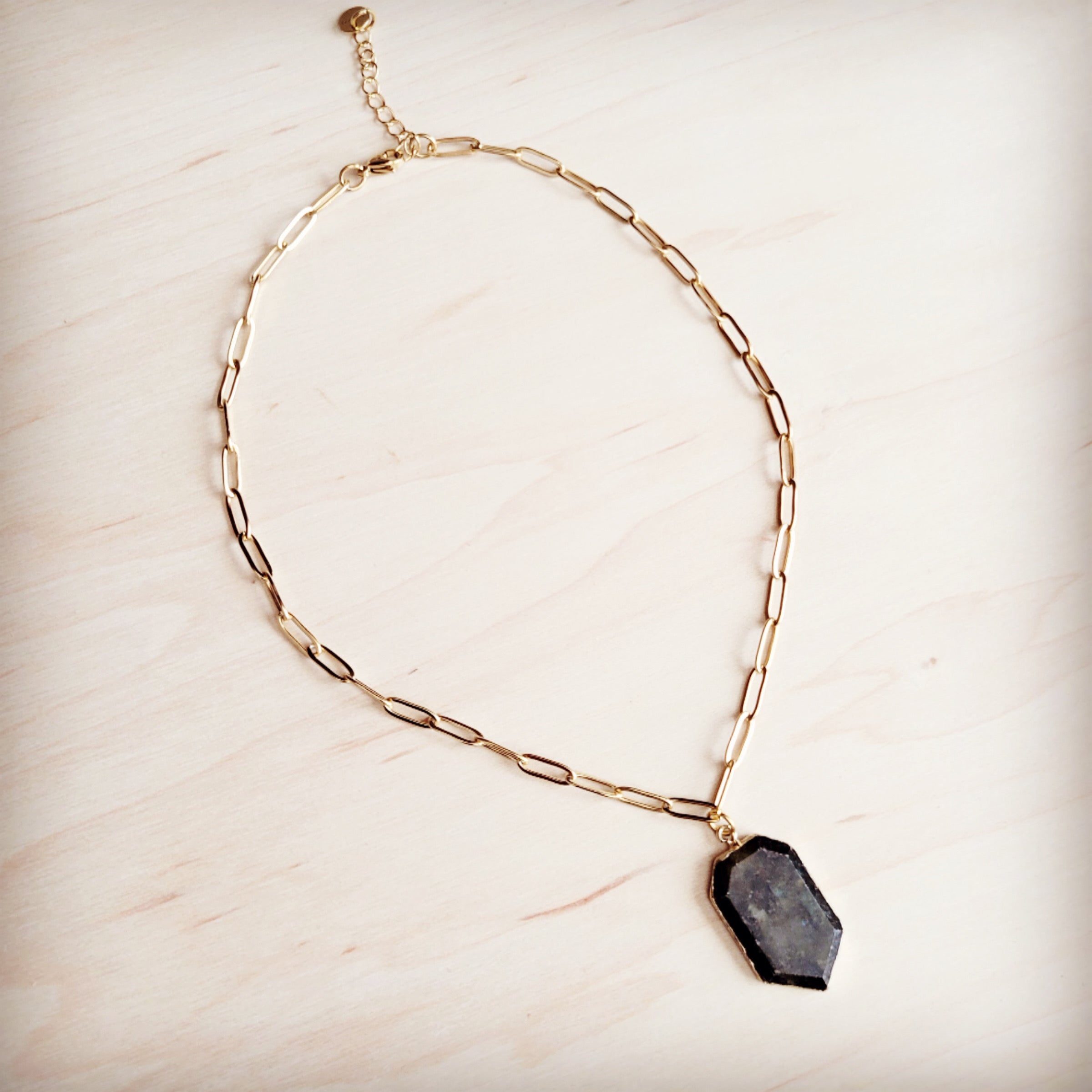 Gold Layering Chain Necklace w/ Midnight Solstice Pendant 257ko