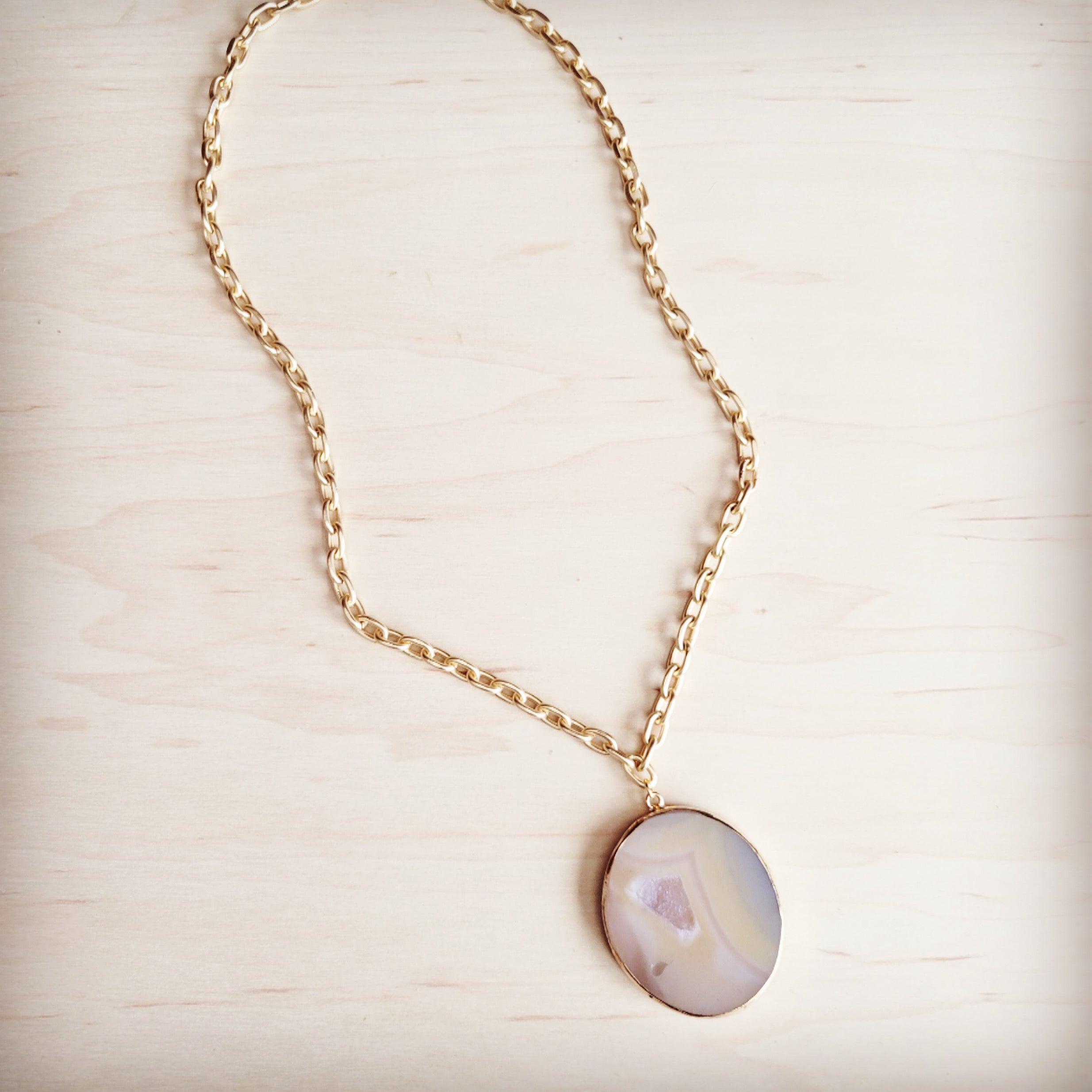 Matte Gold Gilded Agate Pendant on Gold Chain Necklace 257kj