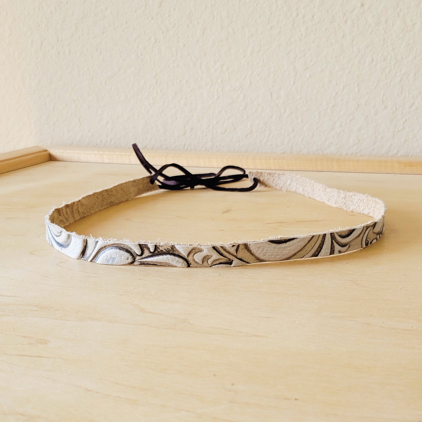 Sandy White Floral Embossed Leather Hat Band Only 951c