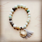 Amazonite Stretch Beaded Bracelet with Tassel and Coin 806m