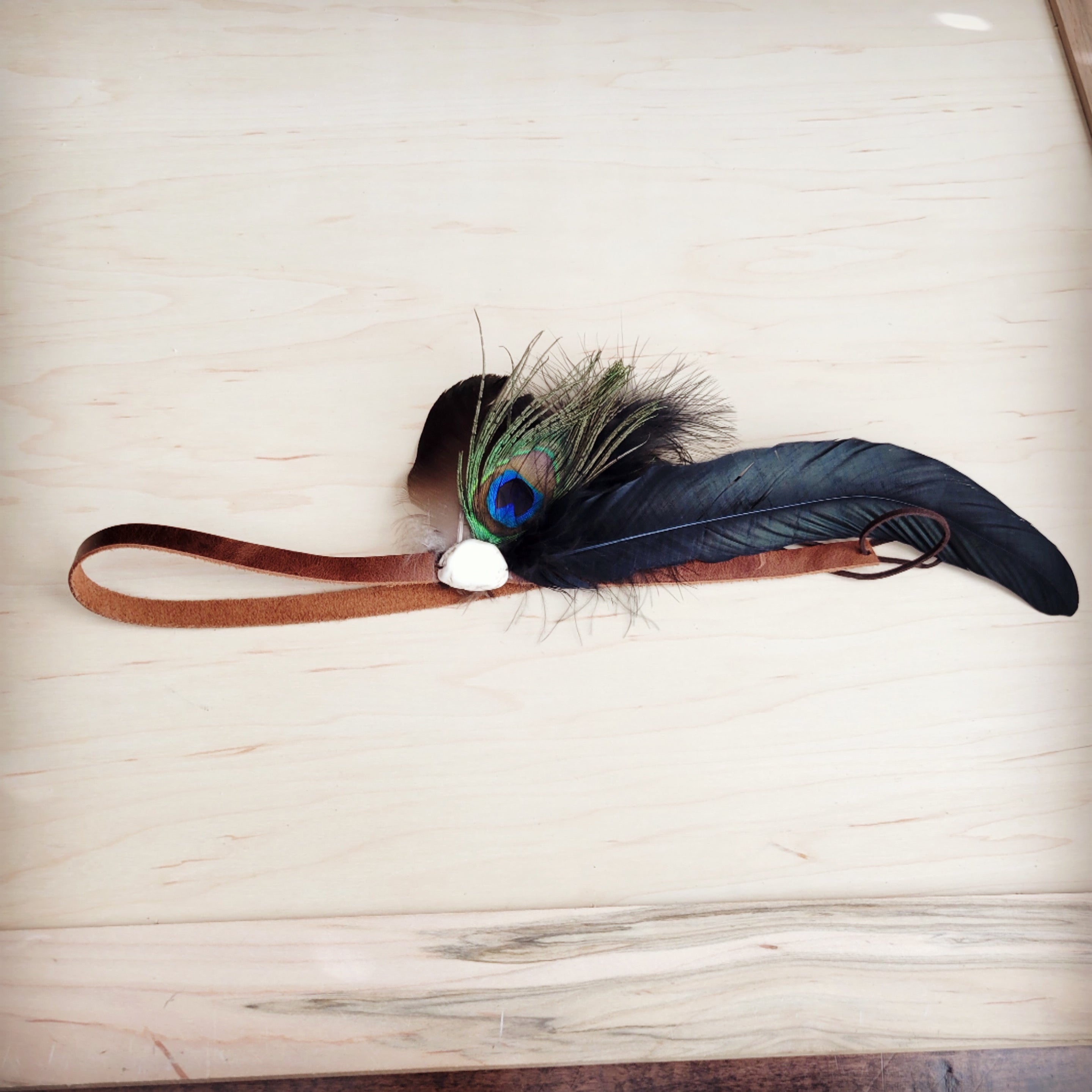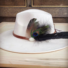 Genuine Leather Tan Hat Band w/ Peacock & Spotted Feathers 953c