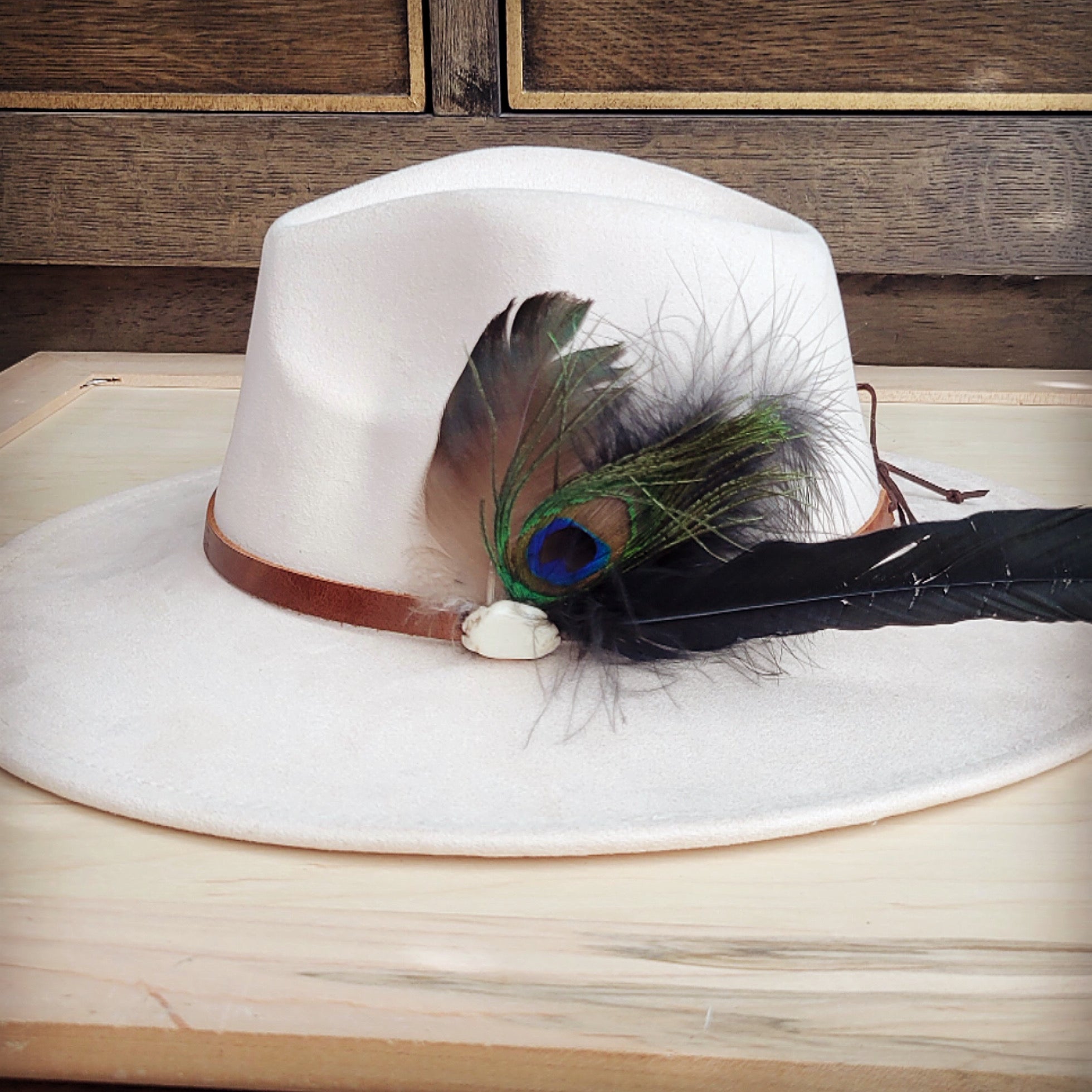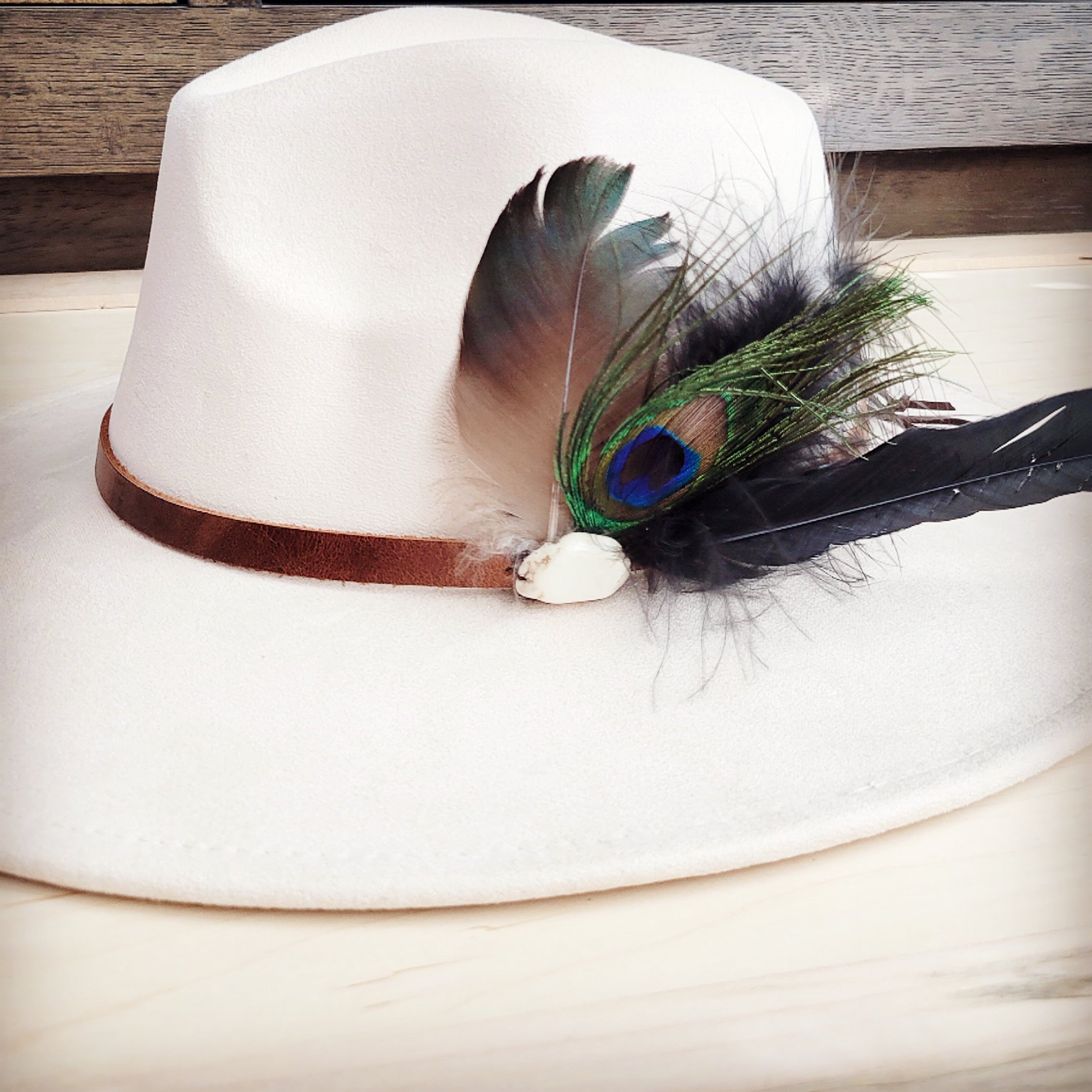 • The same primary feathers will be used on every hat accent.  Keep in mind, these will never be identical to the photo.  These are REAL feathers and no two could be alike without using fake ones--this is what sets your hat accent apart from others and will make it uniquely yours!