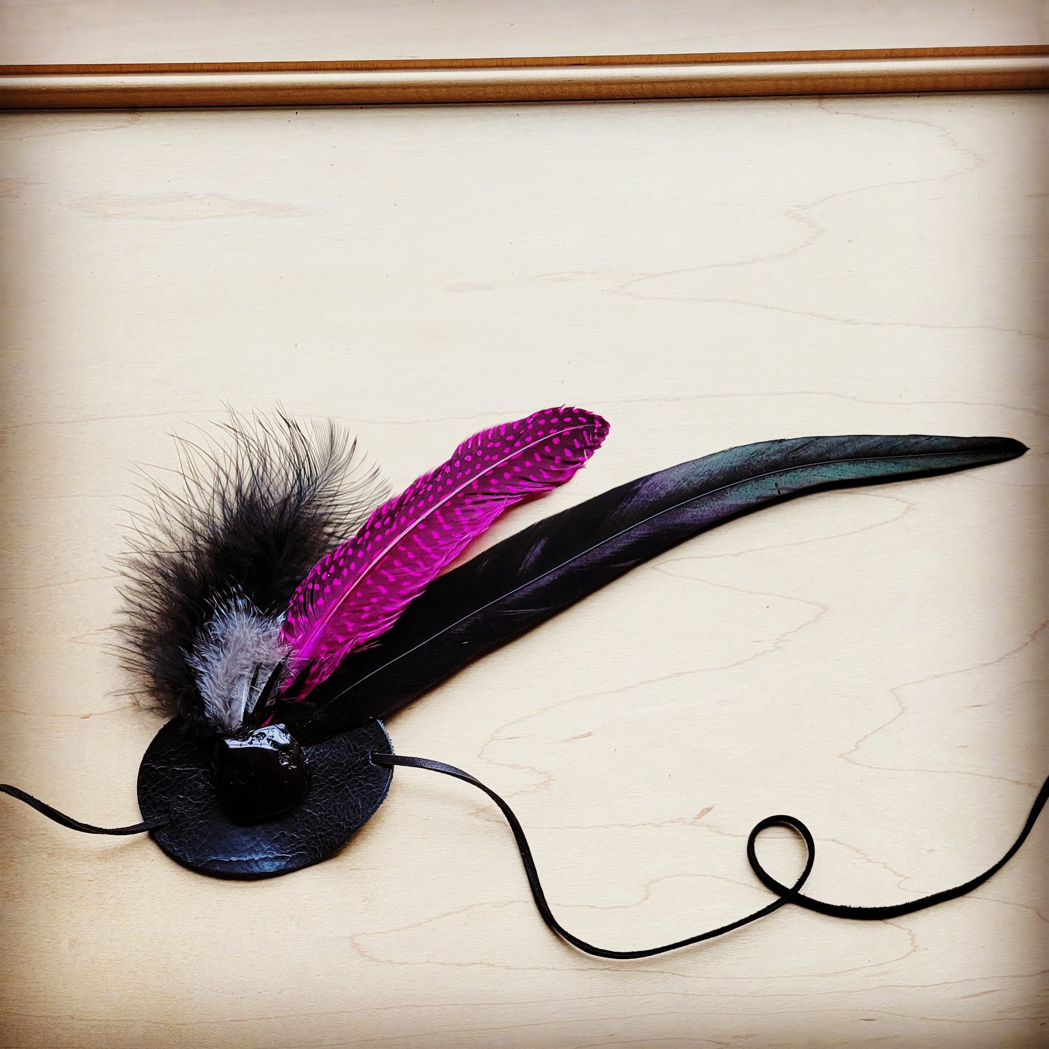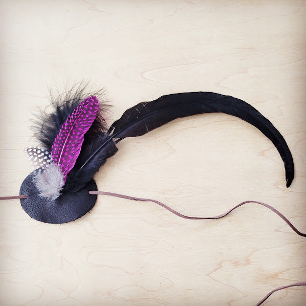 **Spotted Magenta/Black Feather & Leather Hat Band (Band Only) 983d