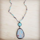 Amazonite & Crystal Long Beaded Necklace w/ Large Jasper Pendant 262q