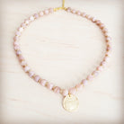 This handcrafted Frosted Sunstone Beads Collar Necklace is the perfect accessory to add a boho touch to any outfit. Made with care and attention to detail, this beautiful necklace features a stunning matte gold pendant and is sure to catch the eye. Elevate your style with this unique and timeless piece.