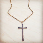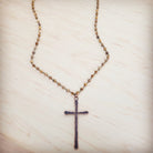 This Genuine Picture Jasper Long Beaded Necklace with Antique Copper Cross is a handcrafted boho accessory perfect for layering. Its intricate beaded design and antique copper cross provide a unique and stylish touch to any outfit. With its versatile length, this necklace can be worn in various ways for a trendy and chic look.