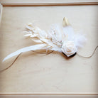 Elevate your boho western wedding with our bridal hat in bone. This desert wedding inspired hat features neutral tones and a touch of blush pink. Our boho hat, adorned with cream roses, ivory daisys, gold and white feathers, and additional floral picks. This pairs beautifully with pearls from our wedding collection. Create an intimate and elegant boho western look for your special day! The item that you receive in the mail will resemble the one in the picture but, because every piece by Jewelry Junkie is handmade, it will not be identical.