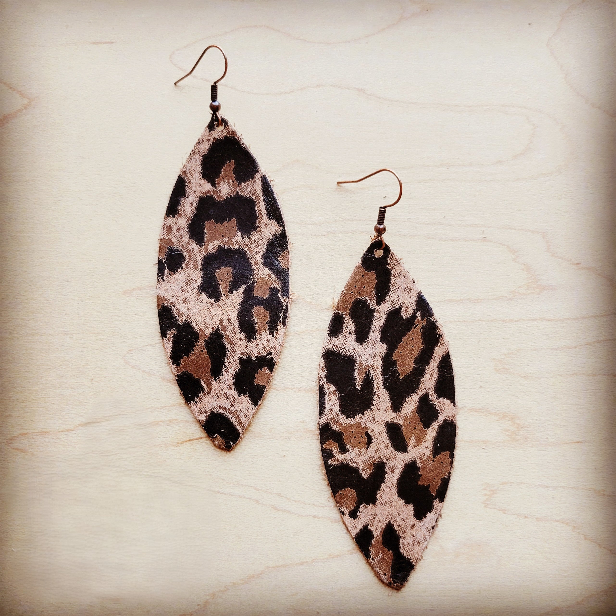 **Narrow Leather Oval Earrings-Suede Leopard 210f