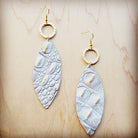 **Narrow Leather Oval Earrings White & Gold Gator w/ Matte Gold Hoop 210x