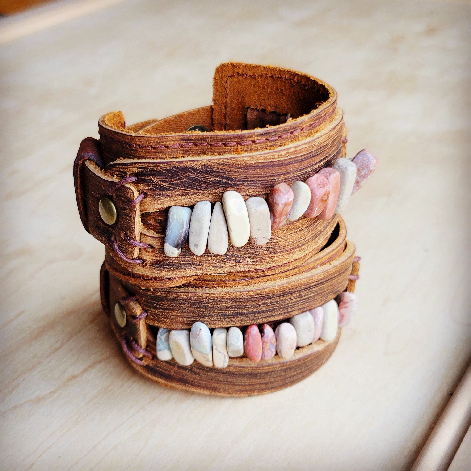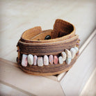 Genuine Leather Cuff with Aqua Terra Gemstone Chunks 005e