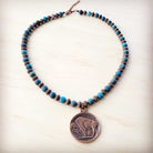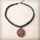 Natural American Turquoise Beaded Collar Necklace w/ Indian Head Pendant 262h