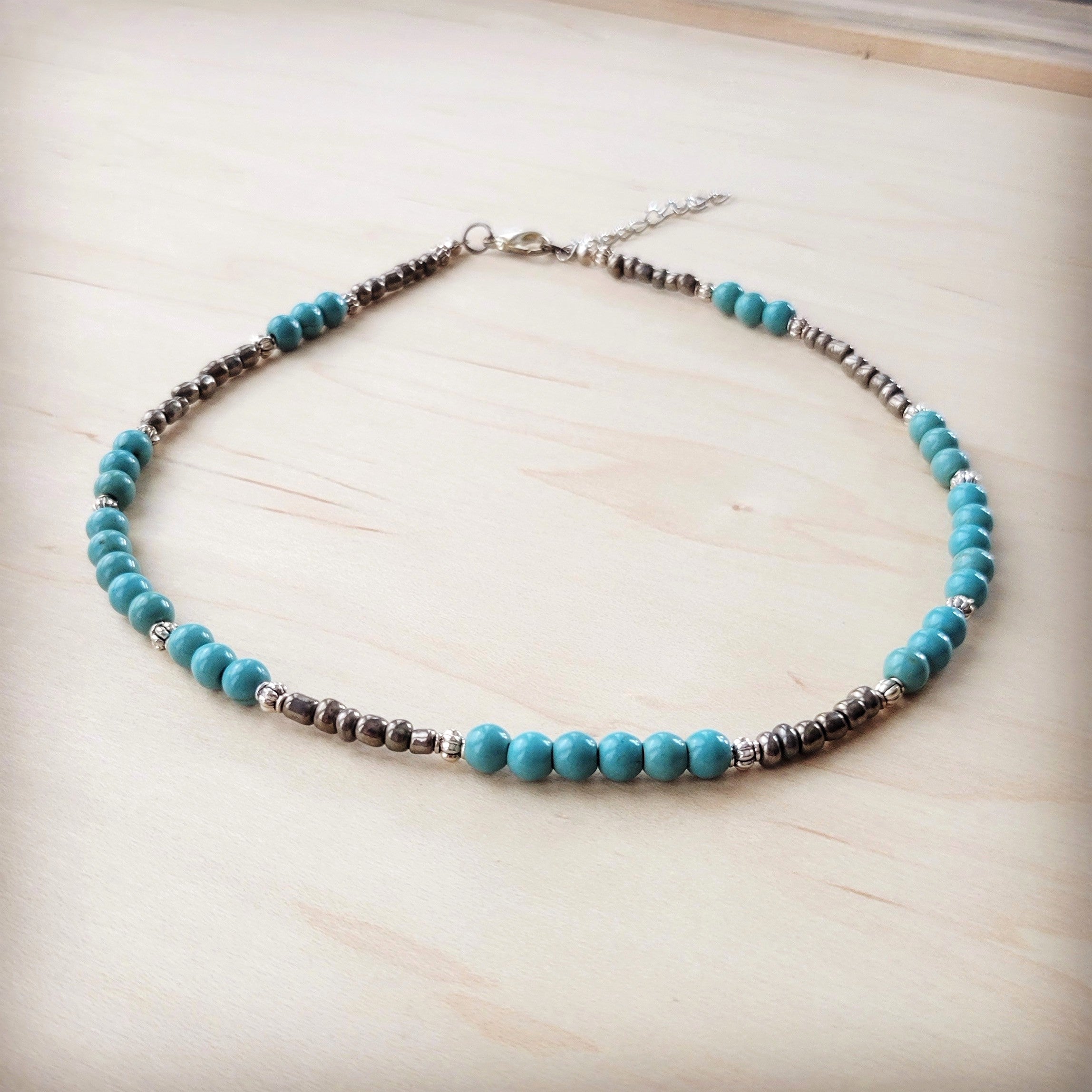 - Materials: silver-tone beads and genuine Howlite Turquoise stones